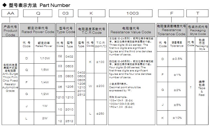 風華高科車規抗浪涌厚膜片式固定電阻器型號命名規則: