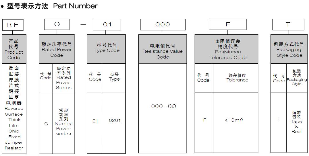 風華高科反面貼裝厚膜片式跨接固定電阻器型號命名規則: