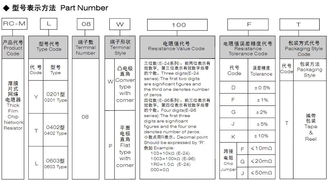 風華高科厚膜片式網(wǎng)絡(luò)電阻 型號命名規(guī)則: