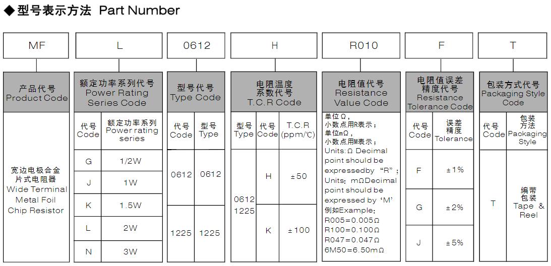 風華高科寬邊電極合金片式電阻器型號命名規則: