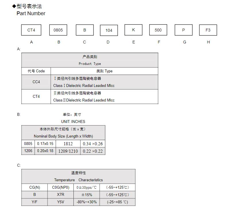 風(fēng)華高科徑向引線多層陶瓷電容型號(hào)命名規(guī)則: