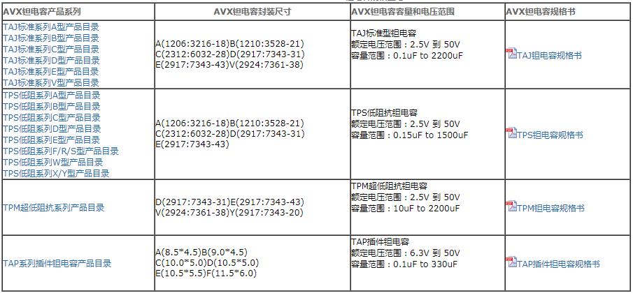 AVX公司生產的鉭電容產品貼片鉭電容和直插鉭電容兩種