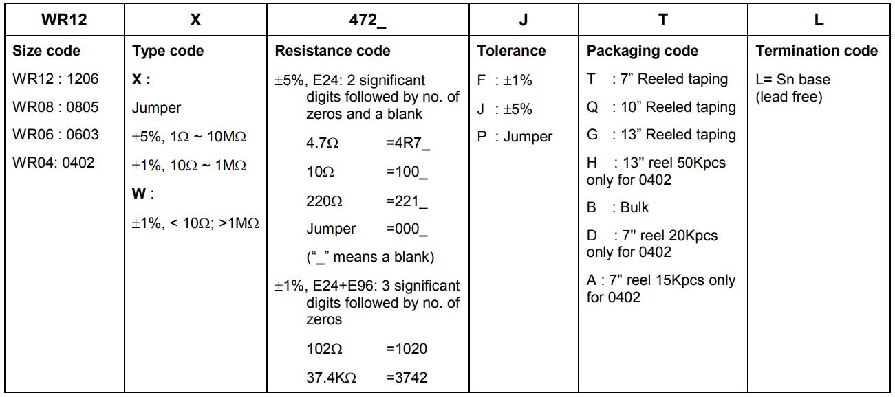 尺碼:WR12:1206 WR08:0805 WR06:0603 WR04:0402