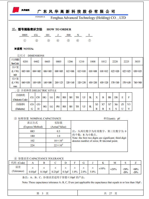 風(fēng)華電容型號(hào)編碼規(guī)則: