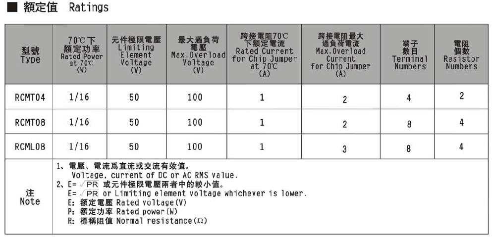 電阻公差:D:±0.5%;J:±5.0%;K:±10%;M:±20%