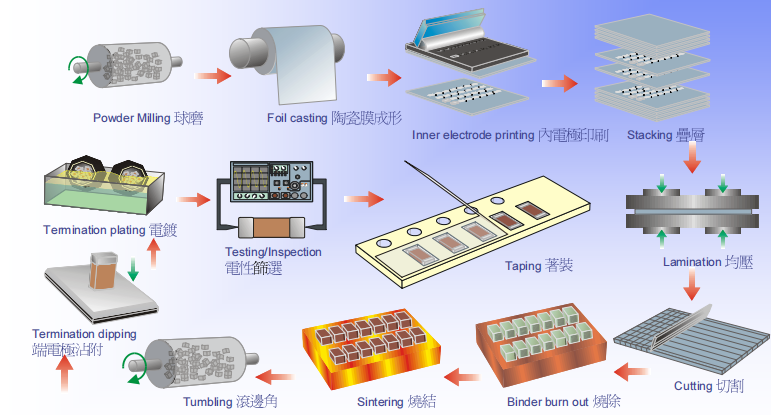 英文 Multi-Layer Ceramic Capacitors,簡稱 MLCC。
